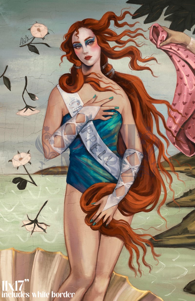 Printed on heavy cardstock gloss with a white border around the artwork. No watermark appears on the printed products.